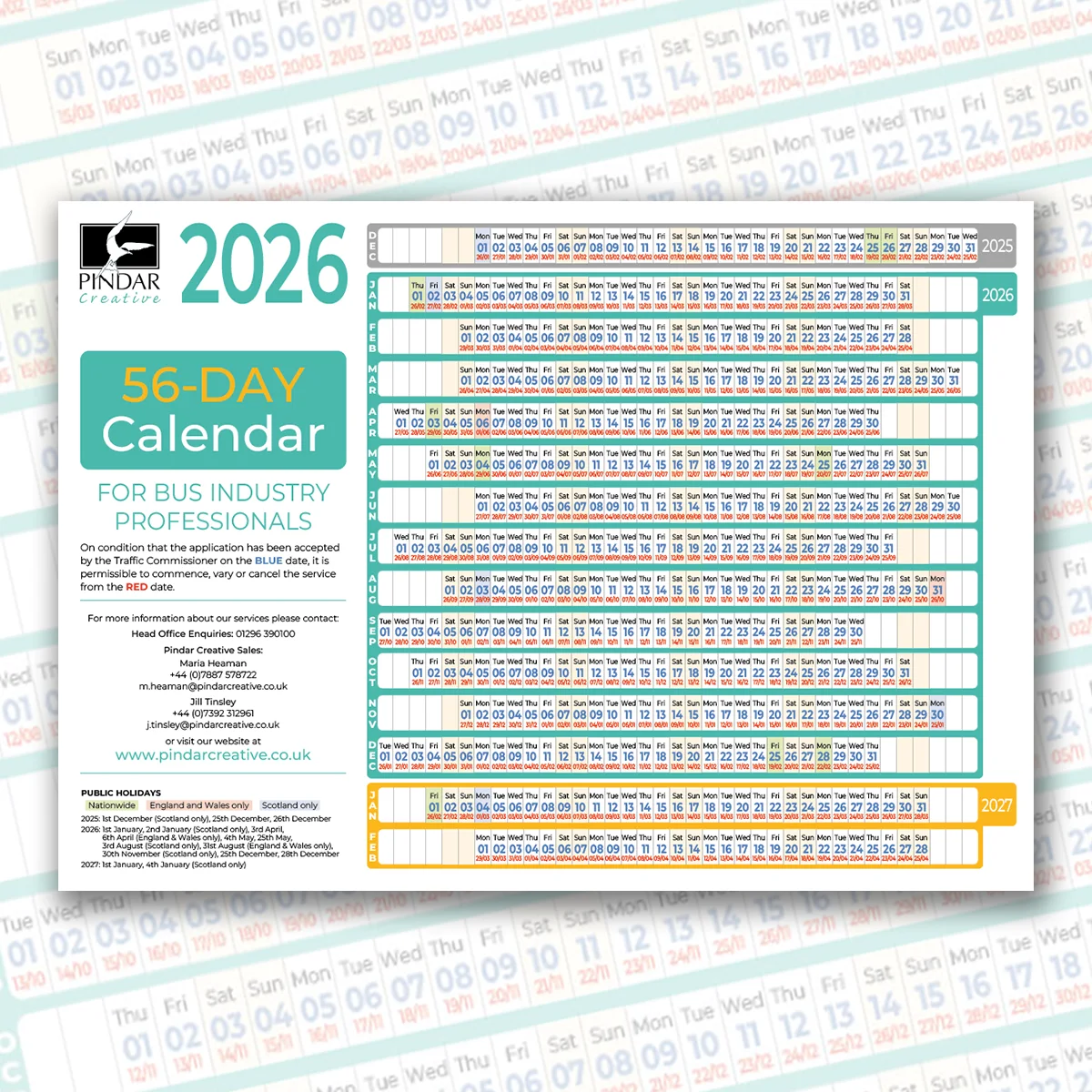 UK Bus Registration Calendars for Operators & Planners
