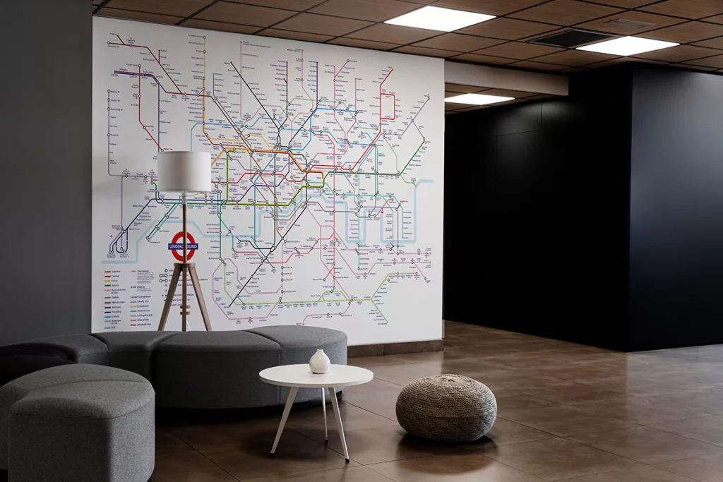 Custom map wallpaper is ideal for creating a lasting focal point, transforming ordinary walls into conversation-starting spaces that reflect personal stories, travel memories or professional identity. Installed using traditional wallpaper methods, it delivers a permanent, high-impact finish suited to long-term interiors.